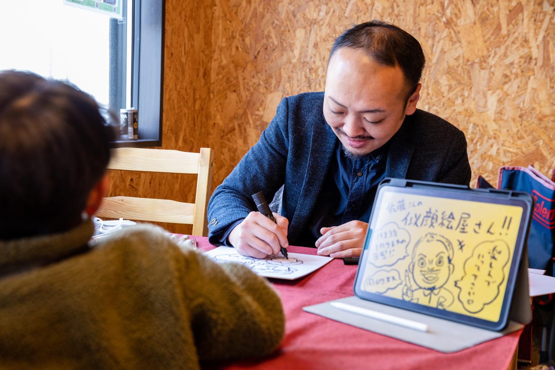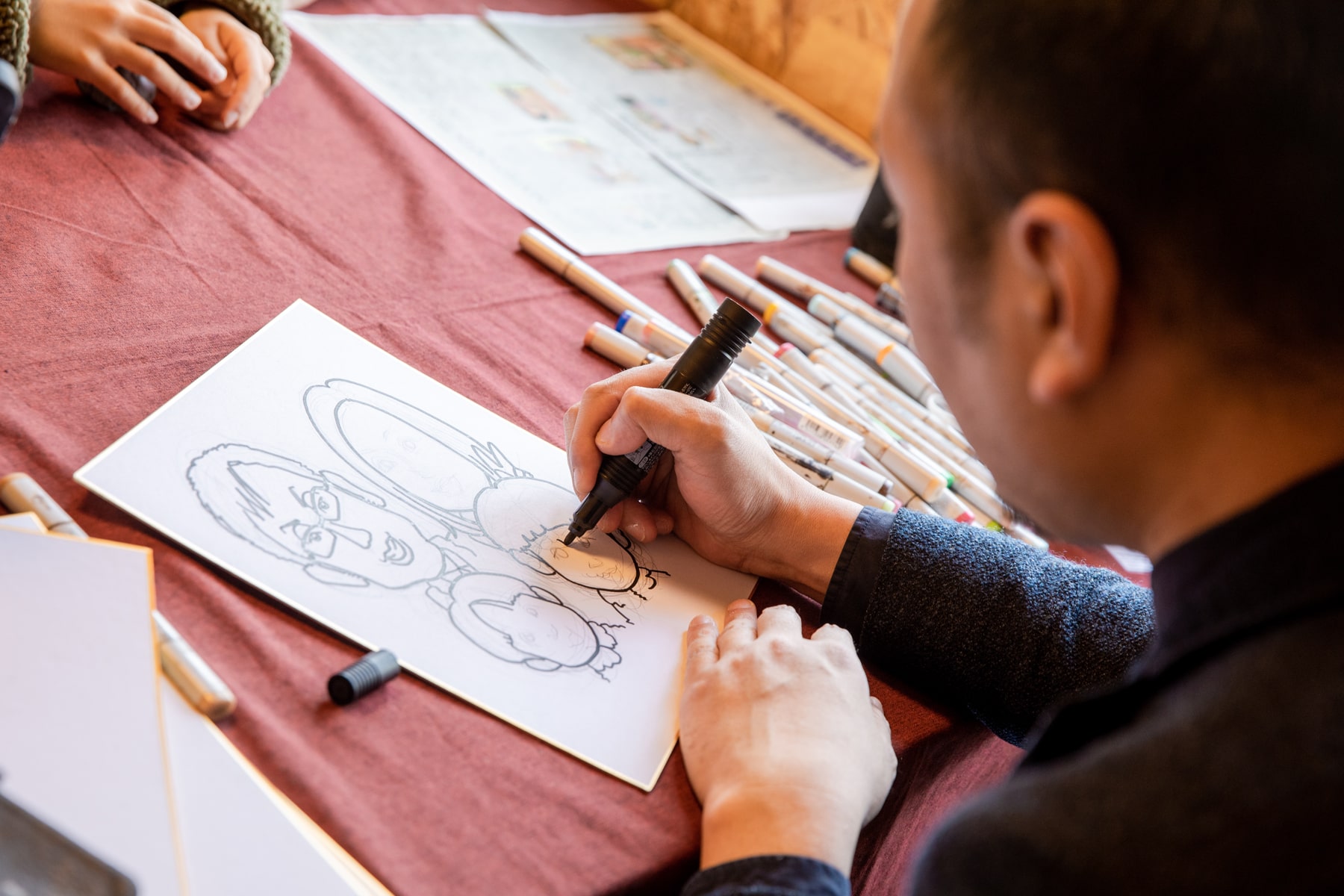 2月のイベント第一弾は、似顔絵のプレゼント!イベント会場では有名な似顔絵師が描いてくれるイラスト。